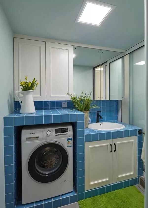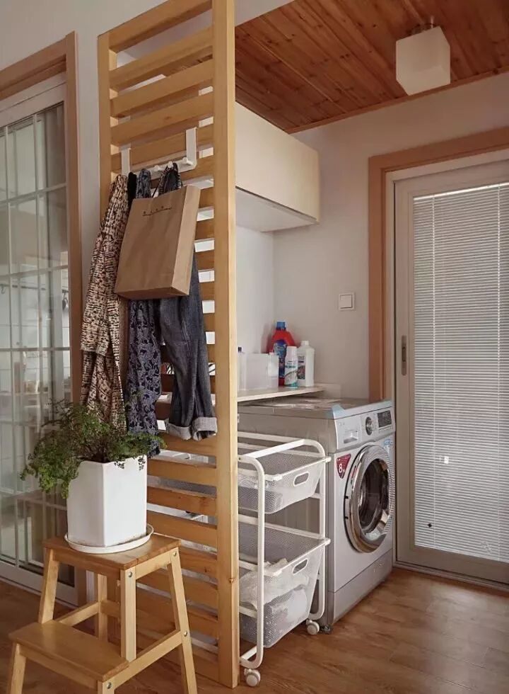 ▲ 洗衣機(jī)布置還有一個(gè)問(wèn)題,如何把洗衣機(jī)上部和邊上的空間合理利用起來(lái)。